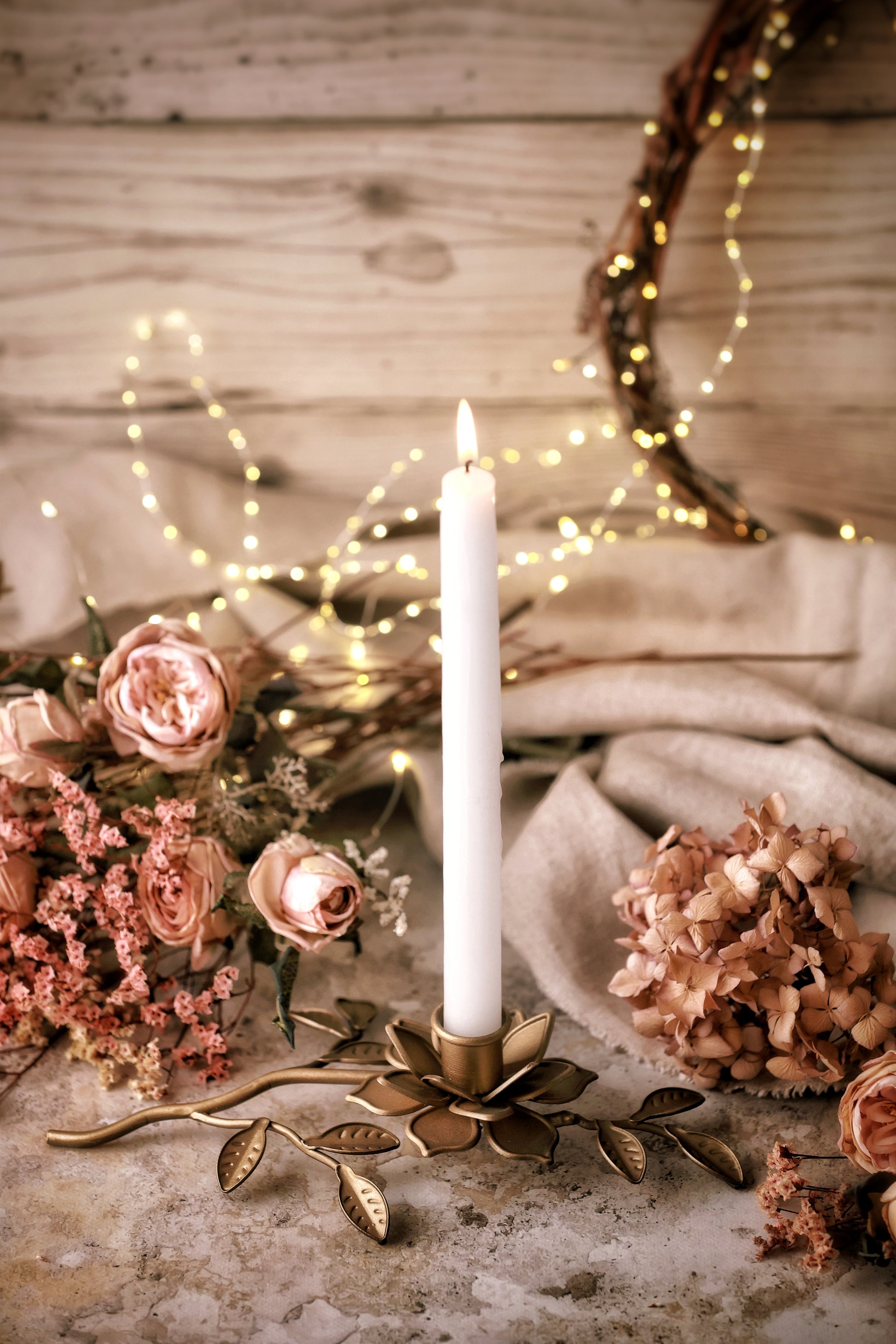 - La fleur, sculptée comme un bouton prêt à s'ouvrir, accueille la bougie en son cœur, évoquant la douceur d'un pétale qui s'épanouit à la lumière.