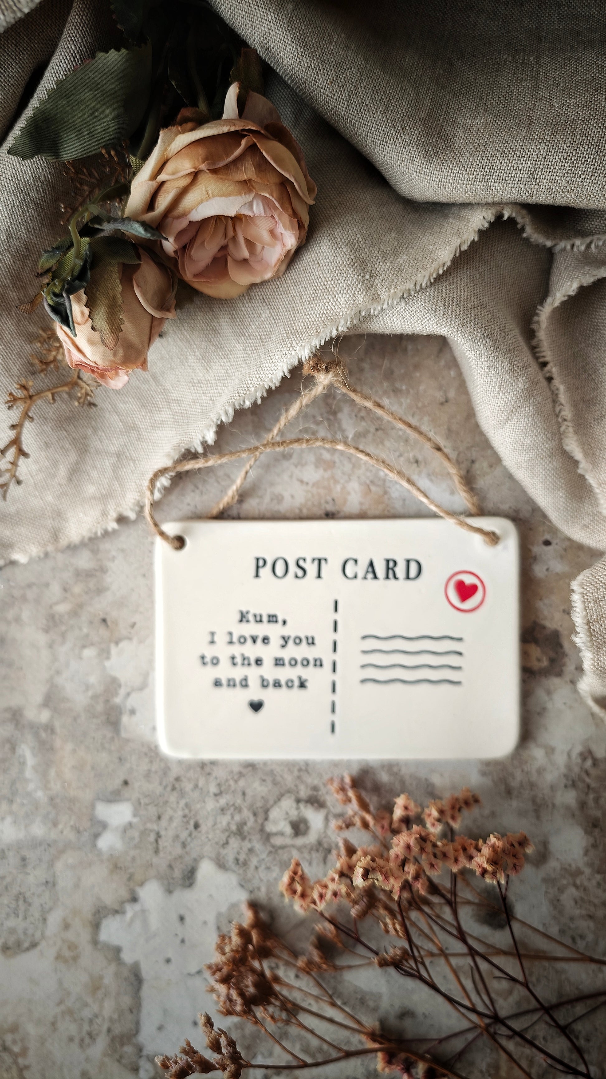 - Sur le devant, l’inscription attendrissante “Mum, I love you to the moon and back”, accompagnée d’un petit cœur, évoque un véritable envoi d’amour, comme un message précieux adressé directement à celle qu’on aime.